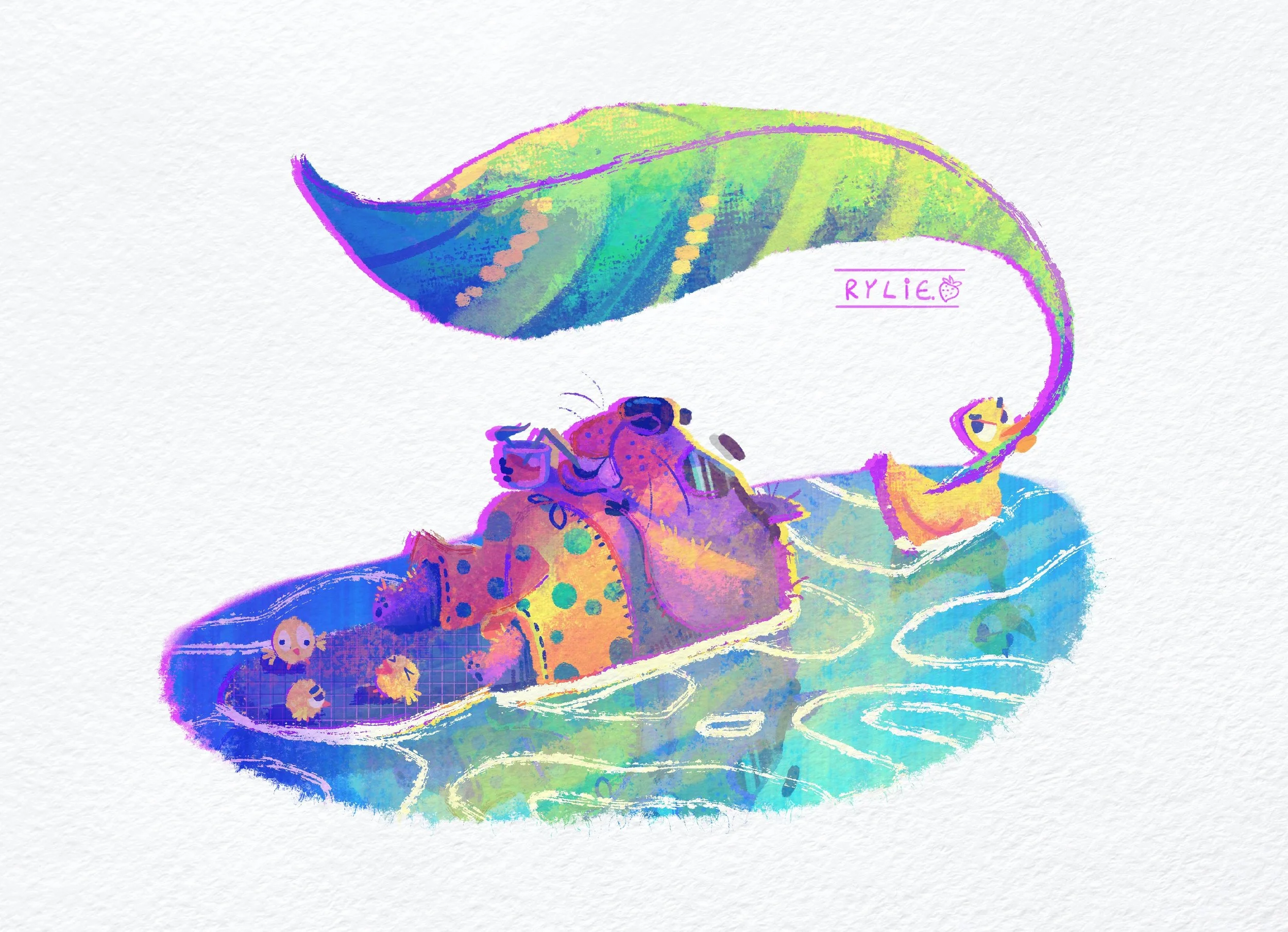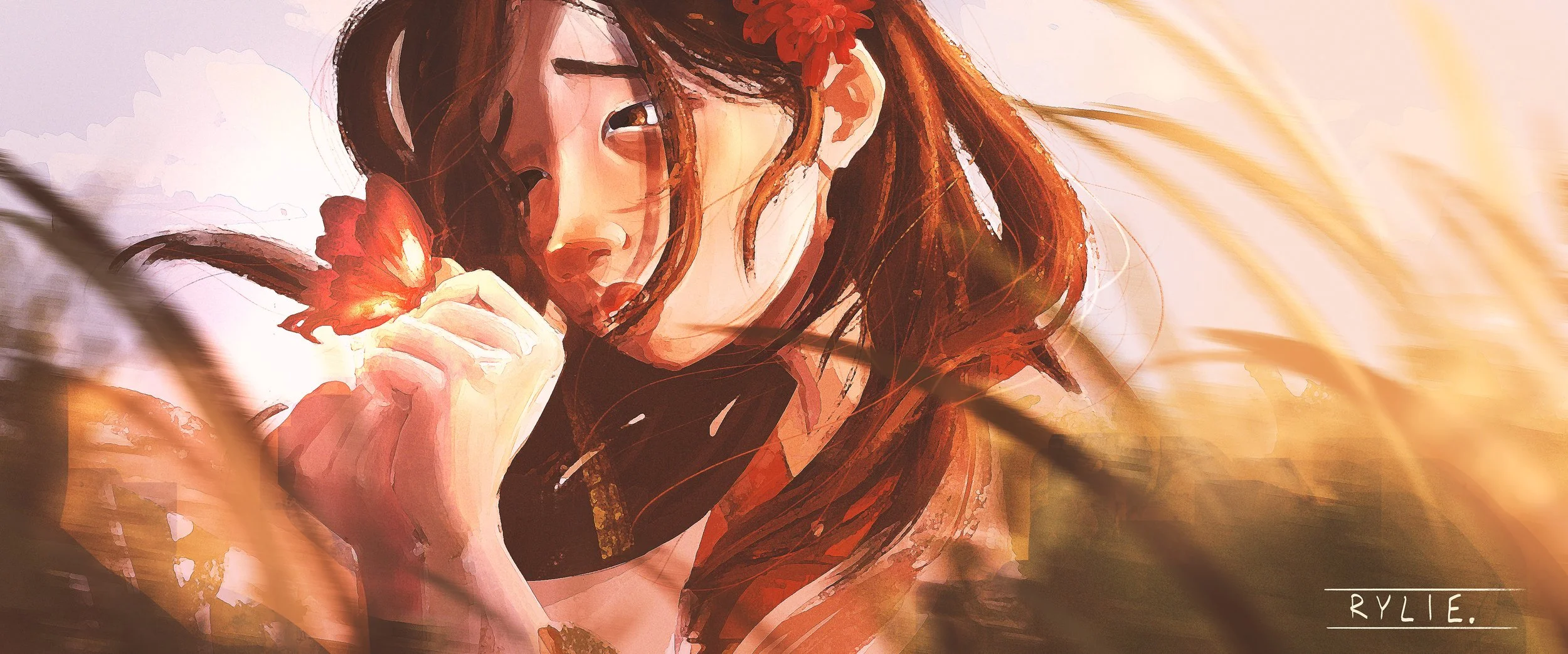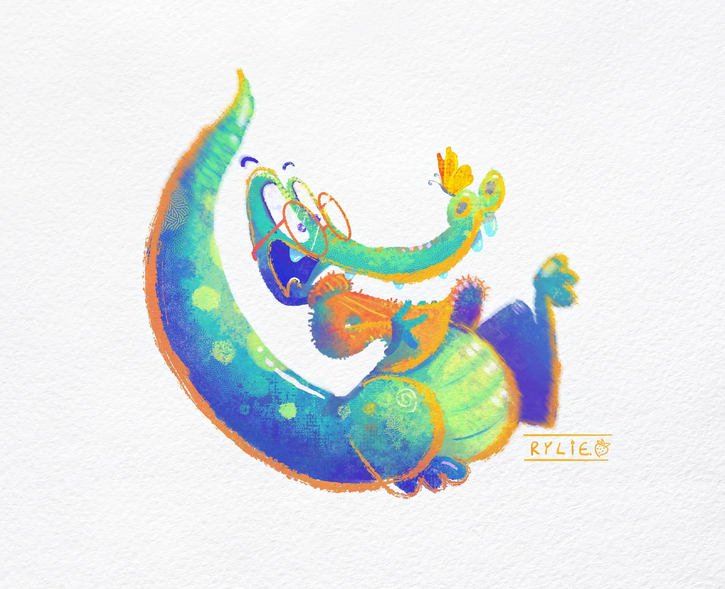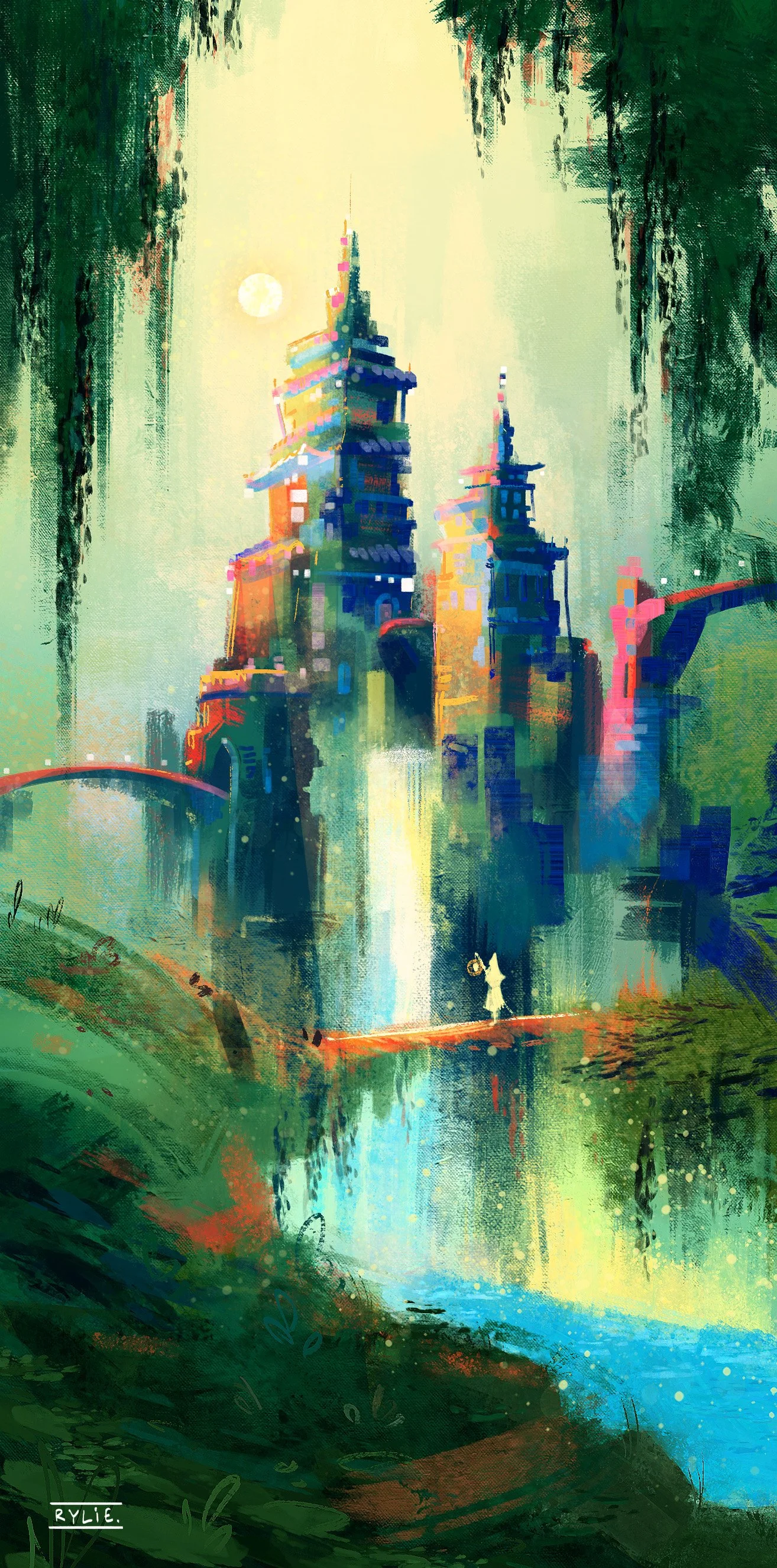 Illustration of a rural landscape with a dirt path, trees, and a field under a clear sky. "Rylie" signature in the corner. View fullsize